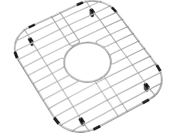 The 20 in x 15 in chrome bottom grid for kitchen sink FRU103 is an essential accessory to protect the sink bottom. Made with durable materials, it provides an elevated surface for draining dishes and utensils, preventing direct contact with the sink and facilitating cleaning.