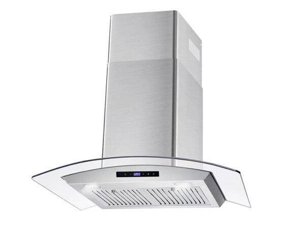 The 30 in Wall Mounted Glass Extractor Hood is an elegant smoke extractor designed for wall mounting. With its modern and functional design, this hood provides excellent ventilation for your kitchen, effectively eliminating cooking odors and smoke.