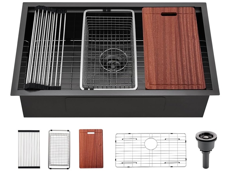 32 in x 19 in x 9 in black undermount single bowl Luxury kitchen sink – Workstation