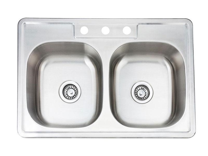 33 in x 22 in x 8 in drop in double bowl 20 Gauge stainless steel kitchen sink