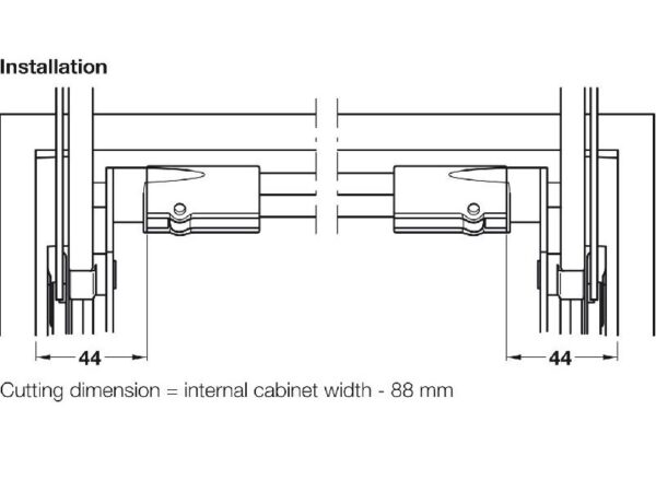 The 372.33.694 bar is designed to provide support and stability for Hafele parallel lift arms. With a maximum cabinet width of 35-7/16 inches, it offers a robust and functional solution for installing lift arms in kitchen cabinets and wardrobes.