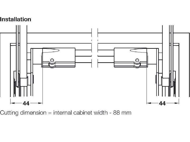 The 372.33.694 bar is designed to provide support and stability for Hafele parallel lift arms. With a maximum cabinet width of 35-7/16 inches, it offers a robust and functional solution for installing lift arms in kitchen cabinets and wardrobes.