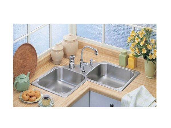 The 8 in 50/50 drop-in stainless steel double bowl corner kitchen sink is a practical solution for maximizing space in your kitchen. Its design efficiently utilizes corners, providing functionality without compromising style.