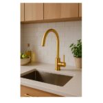 The Addith gold curved kitchen faucet – 73008.2 is a sophisticated and functional piece ideal for any modern kitchen. Made with high-quality materials, this faucet offers the perfect combination of design and durability. Its gold finish gives it a luxurious touch that fits any style of decor. The curved design is not only aesthetically pleasing but also provides greater ease of use and maneuverability when washing large dishes and utensils. Additionally, it features an easy installation system that allows for hassle-free mounting.