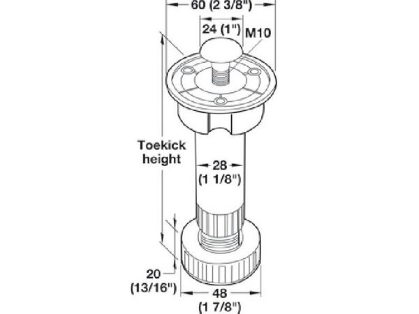 Cabinet Leveler, plastic, black, 5 in to 6 in