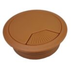 The brown 60mm (2-3/8 inch) cable grommet is an elegant and functional solution for organizing and protecting cables in your home or office. Its durable and discreet design fits seamlessly into any environment.