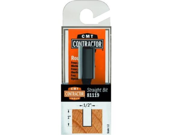 The CMT 81119 Contractor Straight Bit is a high-quality tool designed for precision cutting in various materials such as hardwood, softwood, and composite materials. With a 1/2-inch diameter and a 1/4-inch shank, this bit offers exceptional durability and performance in woodworking applications and construction jobs.