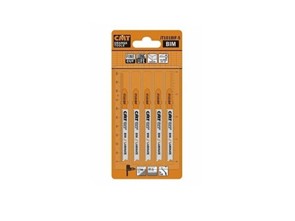 The CMT JT101BIF-5 jigsaw blades are designed for precise cuts in wood. This 5-pack of blades offers durability and optimal performance in a variety of woodworking projects. Compatible with most standard jigsaws, these blades are ideal for professionals and hobbyists alike.
