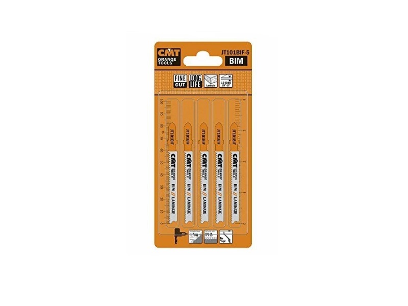 The CMT JT101BIF-5 jigsaw blades are designed for precise cuts in wood. This 5-pack of blades offers durability and optimal performance in a variety of woodworking projects. Compatible with most standard jigsaws, these blades are ideal for professionals and hobbyists alike.