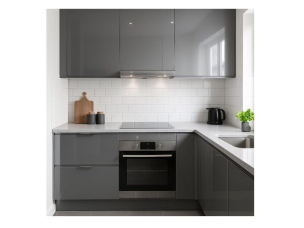 The Grey acrylic laminate with ultra gloss AX finish is a modern and stylish choice for your interior design projects. Its light gray tone and glossy finish add brightness and sophistication to any space. This laminate is water-resistant and easy to clean, making it perfect for high-traffic areas like kitchens and bathrooms.