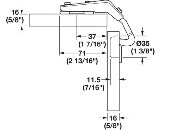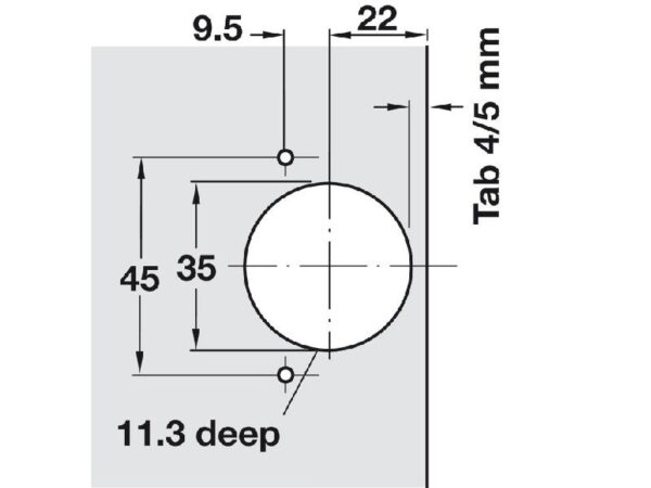 The Hafele Corner Hinge is designed for corner doors in kitchen cabinets. Its design allows for a wide opening angle of up to 135 degrees, facilitating access to the cabinet’s interior.