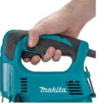 The Makita Top Handle Jig Saw model 4329K is a versatile and powerful tool designed for precise cuts in a variety of materials. Its top handle provides optimal control during use, allowing clean and precise cuts in wood, metal, and plastic. Equipped with a powerful motor and variable speed settings, this jig saw is ideal for woodworking projects, electrical installations, and plumbing work.