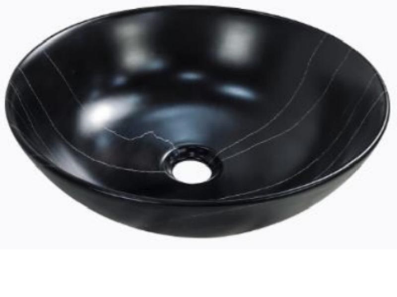 Matt black marbled round vessel bathroom sink NATY-LAV19 – 15.7 x 15.7 x 5.3 in