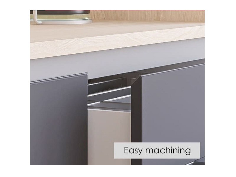The Rincomatic Syma2 profile handle at a 45° miter in Matt Silver color is ideal for those seeking a modern and elegant finish for their furniture. This handle, with its 45-degree miter design, offers a clean and contemporary aesthetic that fits any setting. Made from high-quality materials, it ensures durability and resistance, making it perfect for use in kitchens, bathrooms, and wardrobes. Its 8.5-foot length allows for a wide range of applications, providing not only optimal functionality but also a sophisticated touch to spaces.