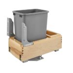 Single 50 Qt. Pullout Bottom Mount Wood and Silver Waste Container w/Rev-A-Motion Slides – 4WCBM-15DM-1-16