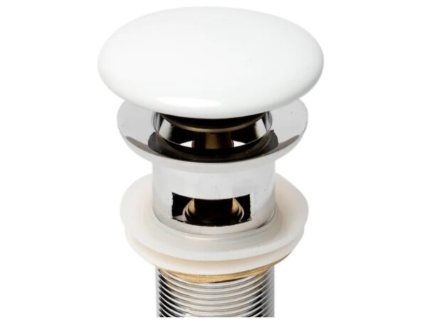 The White color metal pop-up, no overflow, is an essential accessory for sinks and washbasins. Made of high-quality metal with a white finish, this pop-up combines functionality with style to complement any bathroom.