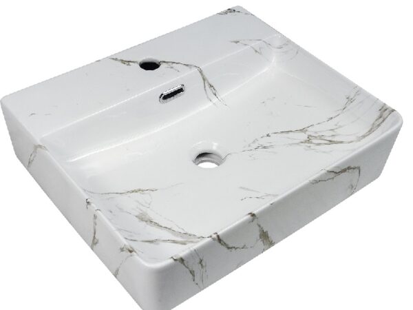 The white marbled rectangular vessel bathroom sink NATY-LAV14 adds an elegant and sophisticated touch to any bathroom. With its modern design and white marbled finish, this sink is a stunning piece that complements a variety of decor styles. Made with high-quality materials, it ensures durability and stain resistance. Easy to clean and maintain, this sink is an excellent addition in terms of both style and functionality.