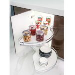 The White Trebol peanut-shaped Lazy Susan is specifically designed to make the most of blind corner spaces in kitchens or pantries. With its sleek white color, this two-tier organizer offers excellent distribution, allowing easy access to all stored items. Its innovative peanut shape ensures that shelves rotate fully, making every corner accessible without effort. Ideal for those seeking to optimize storage in small spaces, this product is perfect for modern homes.
