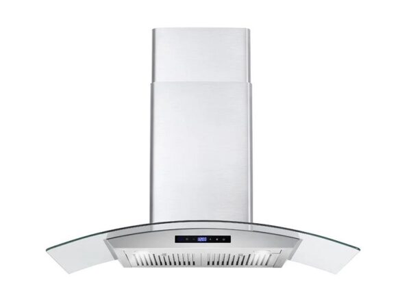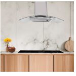 Una elegante campana extractora de vidrio para montaje en pared, perfecta para cocinas modernas. Con un diseño de 36 pulgadas, esta campana proporciona una potente extracción de humo y olores.