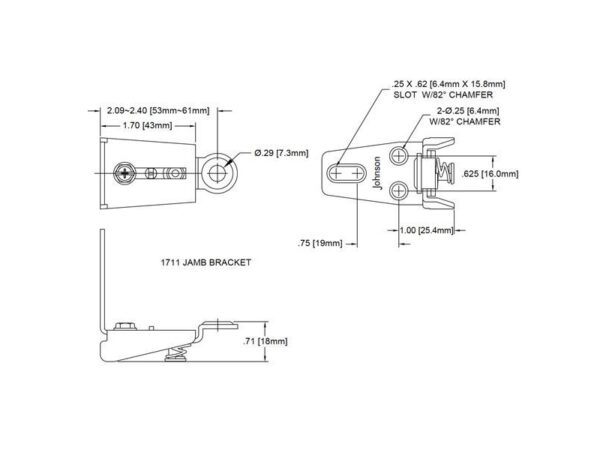 El esquinero Johnson #1711 jamb bracket es una pieza esencial para la instalación de puertas plegables. Fabricado con materiales duraderos y de alta calidad, este esquinero garantiza un soporte robusto para el pivote inferior de la puerta, asegurando su funcionamiento suave y seguro.