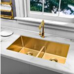El fregadero Luxury undermount doble cuadrado oro ofrece un diseño elegante y funcional para tu cocina. Con medidas de 32 in x 18 in x 9 in, se adapta a diferentes espacios. Su construcción de calidad y acabado de lujo garantizan durabilidad y estilo.