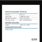 El grinder inalámbrico de 4-1/2 pulgadas y 20V con batería de 4 Ah y cargador rápido de la línea Switch AKSI es una herramienta versátil y potente para cortar y desbastar materiales. Su diseño compacto y sin cables permite un uso conveniente en cualquier lugar.