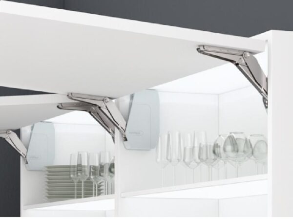 Hafele Free Flap 3.15 model F, con cierre lento (soft close), de acero niquelado de plástico gris – 372.91.332