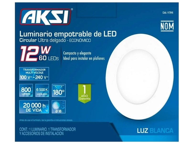 La lámpara empotrable circular LED de la línea eco de AKSI es una solución eficiente para iluminar tus espacios con una luz blanca brillante. Con una potencia de 12W y una temperatura de color de 6500K, proporciona una iluminación clara y nítida.