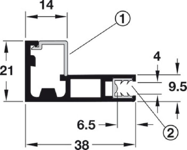 Perfil de marco de puerta de aluminio plateado de 1-1/2 in x 8.2 ft Hafele – 563.26.902