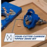 La plantilla para instalar goznes Kreg® – KHI-HINGE es una herramienta diseñada para facilitar la instalación precisa y rápida de goznes ocultos. Con su diseño ajustable y fácil de usar, esta plantilla garantiza un montaje perfecto de los goznes, ahorrando tiempo y esfuerzo en proyectos de carpintería y construcción.