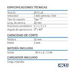 La sierra caladora inalámbrica de 20V con batería de 2 Ah y cargador de la línea Switch AKSI ofrece versatilidad y potencia para cortes precisos. Su diseño ergonómico y portátil la hace ideal para trabajos en madera y otros materiales.